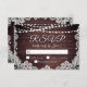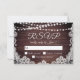 Cartes RSVP de mariage rustiques et élégantes avec belle grange brune en bois avec des lampes à cordes brillantes et accentué avec dentelle blanche. Contactez le concepteur via Zazzle Conversation ou makeitaboutyoustore@gmail.com si vous souhaitez modifier ce design, sur un autre produit ou des éléments de coordination.