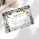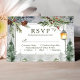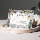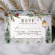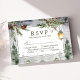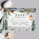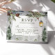 Carte RSVP pour mariage aux lanternes botaniques hiver Pins rustiques. Magnifique design de mariage hivernal avec lanterne enneigée avec branches de pins botaniques rustiques et pins. Cette collection mariage moderne personnalisée peut facilement être personnalisée avec vos propres détails mariages.
