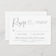 Les cartes de mariage RSVP modernes gris argenté et blanc (les couleurs peuvent être modifiées) présentent un design typographique élégant avec un script de calligraphie chic et un accent de coeur. Le texte personnalisé simple et élégant qui peut être personnalisé avec la date d'échéance RSVP. Le design comprend une ligne pour le(s) nom(s) d'invité(s), la présence à l'événement et une demande pour chaque invité d'initier son choix de dîner menu.