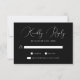Complétez votre gamme de papeterie mariage avec notre carte RSVP Chic Black White Calligraphy Script Wedding. Avec un texte élégant sur un arrière - plan noir élégant, ces cartes permettent aux clients de répondre facilement. Champ personnalisable pour les délais RSVP. Le design élégant noir et blanc se marie parfaitement avec des mariages minimalistes ou modernes, tandis que la calligraphie subtile ajoute une touche de sophistication. Une façon intemporelle et sans chichi de gérer votre liste d'invités avec style !