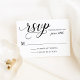 Les cartes RSVP de mariage noir et blanc, modernes et chic, présentent un design typographique noir élégant avec des accents de script de calligraphie audacieux et un élégant texte personnalisé qui peut être personnalisé avec votre date d'échéance de réponse.