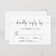 Elégante carte RSVP mariage avec "gentiment répondre par" dans un script de calligraphie chic avec des swashes, une simple typographie moderne et vos noms réunis par un coeur sur le dos.