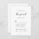 La carte rsvp de mariage romantique propose un script élégant et des détails élégants de l'événement en noir et blanc, moderne et simple, idéal pour un mariage formel minimaliste, mariage classique traditionnel, mariage simple moderne. Voir toutes les pièces correspondantes dans la collection.