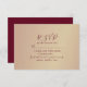 Élevez votre mariage avec notre carte RSVP minimaliste, alliant élégance moderne avec or rose et accents bordeaux. Le script de calligraphie simple ajoute une touche de raffinement, assurant une réponse chic et élégante à votre journée spéciale.