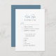 Carte RSVP de Faire-part de mariage Whimsical Moderne Bleu Dusty. Tous les textes sont pré-arrangés pour que vous personnalisiez facilement et rapidement avec vos propres détails.