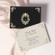 Luxueuse carte RSVP noir et or avec des fleurs baroques ornées et un élégant monogramme d'or sur le dos. Le design noir classique respire le raffinement, parfait pour un thème formel, royal ou mariage du soir. Vous pourrez facilement confirmer votre présence et vos préférences en matière de repas. Il s'harmonise parfaitement avec la suite d'invitation noire et or correspondante.