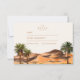 Un mélange romantique de neutres de sable, de palmiers aquarelles et de crêtes de montagne ocre donne à ce design une atmosphère sereine de Sud-Ouest. Parfait pour les couples qui hébergent une destination ou un mariage d'escalier dans le désert, cette esthétique minimaliste mais pittoresque capture la beauté naturelle du paysage aride. Les tons doux et la typographie élégante rehaussent le design d'une célébration intemporelle sous le soleil.
