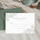 Elégante carte de mariage floral RSVP avec des fleurs croisées vert sauge et des feuilles aux coins avec un arrière - plan blanc. Personnalisez les cartes RSVP de mariage botanique avec votre date RSVP désirée et personnalisez les acceptations/déclins de texte dans les lettres vert sauge classiques. Conçu pour coordonner avec notre collection de mariages de fleurs esquissées.