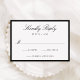 Cette carte de réponse de mariage présente une écriture calligraphique noire élégante en haut, associée à une typographie serif classique et un espace pour la date de réponse souhaitée pour le mariage. Une bordure noire épaisse encadre le design, créant un aspect soigné et structuré qui semble intemporel et raffiné. La mise en page épurée offre une façon sophistiquée pour les invités de répondre, ce qui rend cette carte de réponse parfaitement adaptée aux célébrations de mariage modernes, formelles et classiques. Personnalisez le texte pour créer une carte de réponse qui semble intentionnelle et magnifiquement conçue.