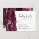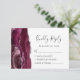 Le bord gauche de cette élégante carte d'enceinte RSVP de mariage moderne est doté d'une bordure d'aquarelle bordeaux et d'une parties scintillant en faux argent. Le titre "Kindly Reply" apparaît dans un script d'écriture manuscrite, avec le texte personnalisable ci-dessous en caractères gris fusain sur un arrière - plan blanc. L'envers est assorti d'un design d'agate bordeaux et argenté.