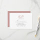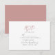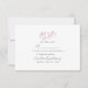 Cette carte RSVP chic et minimaliste dispose d'un arrière - plan blanc propre avec des accents de calligraphie moderne en rose poussiéreux doux et gris charbon de bois. Avec des options clairement définies pour la fréquentation et les préférences de repas, y compris végétarien, végétalien et sans gluten, c’est le complément parfait à une suite de faire-part de mariage moderne ou romantique. Elégant et facile à customiser pour toute célébration de couple.