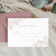 Elégante carte de mariage floral RSVP avec des fleurs croquetées de rose poussiéreux et des feuilles aux coins avec un arrière - plan blanc. Personnalisez les cartes RSVP de mariage botanique avec votre date RSVP désirée et personnalisez les acceptations/déclins de texte dans les lettres roses poussiéreuses classiques. Conçu pour coordonner avec notre collection de mariages de fleurs esquissées.