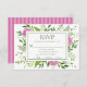 Cette carte RSVP charmante et élégante, avec de belles hydrangées roses pleines de sagesse et d'étonnantes feuilles vertes et un dos rayé rose coordonné, est parfaite pour recevoir avec vos invitations. Vos invités trouveront facile de répondre à votre mariage. C'est un excellent choix pour n'importe quelle mariée du printemps ou de l'été. Vous pouvez facilement vous débrouiller seul en sélectionnant Personnaliser ce modèle et en tapant votre date limite de réponse. En quelques secondes, vous verrez vos cartes RSVP uniques et étonnantes! De plus, la sélection des entrées vous aidera à vous restaurer à la réception.