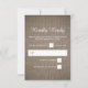 Ces cartes RSVP sont parfaites pour tout couple qui planifie un mariage campagnard romantique. Le design est composé d'un arrière - plan rustique avec un élégant style blanc. Le design simple peut être personnalisé pour votre événement spécial et sera la carte de réponse parfaite pour toute soirée rustique chic à thème, y compris : douches nuptiales, fiançailles, wedding showers, fêtes d'anniversaire et bien plus encore.