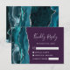 Le bord gauche de cette élégante carte d'enceinte RSVP de mariage moderne comporte une bordure d'aquarelle bleue turquoise, ornée d'une parties scintillant en faux argent. Le titre "Kindly Reply" apparaît dans un script d'écriture manuscrite, avec le texte personnalisable ci-dessous en gris argenté, police de cuivre sur un arrière - plan violet. L'envers présente un design d'agate bleu et argent turquoise assorti.