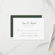 Cette carte de réponse de mariage rsvp vert de forêt minimaliste moderne comprend un script simple et une disposition élégante avec votre propre choix de repas personnalisé.