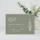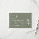 Décontractée carte RSVP de mariage vert sauge avec un pin et un design typographique simple. Avec une date personnalisable, vous ajoutez vos propres informations. Un ajout moderne à votre suite d'stationnements mariage.
