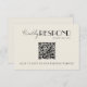 Une simple et élégante calligraphie colorée carte rsvp de mariage rétro. Il a un vintage arrière - plan crémeux moderne avec script noir et des mots stylisés à la main whimsical. Et un code QR personnalisable. Minimaliste et chic avec lettrage manuscrit. Il est entièrement modifiable en cliquant sur le bouton Personnaliser.