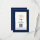 Offrez à vos invités de répondre à votre faire-part de mariage et d'explorer votre site mariage avec ces élégants détails RSVP et code QR design avec script moderne, bleu marine et or y compris un palmier artistique et cadre or métallique sur le devant de la carte. Un arrière - plan bleu marine est à l'avant et à l'arrière.