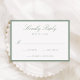 This wedding RSVP card features elegant sage green calligraphy script at the top, paired with classic serif lettering and space for your desired wedding response date. A soft sage green border frames the design, bringing a calm, refined feel to the structured layout. The understated design offers a polished way for guests to reply, making this RSVP card well suited for garden-inspired, modern, and classic wedding celebrations. Personalize the wording to create a response card that feels natural, balanced, and thoughtfully designed.