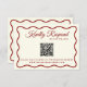 Une simple et élégante calligraphie colorée carte rsvp de mariage rétro. Il a un vintage moderne élégant arrière - plan d'ivoire laiteux avec un script rouge profond et un cadre ondulé whimsical dessiné à la main. Avec code QR personnalisable. Minimaliste et chic avec lettrage manuscrit. Il est entièrement modifiable en cliquant sur le bouton Personnaliser.