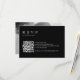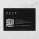 Carte RSVP de Mariage de code QR moderne avec une disposition simple et minimaliste avec votre code QR et les instructions à côté dans l'alignement gauche. Le dos a votre photo préférée. Tout le texte est en blanc sur un arrière - plan noir et peut être modifié à n'importe quelle couleur en cliquant sur le bouton "personnaliser".