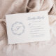 Ce design mariage présente un élégant monogramme de scénario initialement encadré par une couronne d'art linéaire de feuillage bleu poussiéreux sur un arrière - plan blanc. Les mots "Kindly Reply" apparaissent au-dessus du texte bleu poussiéreux personnalisable, qui comprend la place pour une option RSVP en ligne avec l'URL du site.