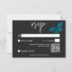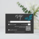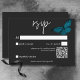 Cette carte de réponse mariage avec un code QR design comporte un thème sombre et moody simple, mais étonnant. Un arrière - plan noir au charbon de bois foncé est la toile parfaite pour un seul papillon bleu turquoise, ses ailes étalées pour le vol. Unique et élégant, ce design peut être utilisé pour n'importe quelle saison. Créé par Simply Farmhouse Press.