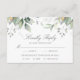 Belles cartes de réponse de mariage avec des options de repas, avec de l'eucalyptus aquarelle et des feuilles dorées.