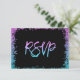 Cartes RSVP modernes en paillettes fausses violettes et turquoise. Parfait pour un mariage, un Bat Mitzvah ou une fête de 16 ans. Les dessins sont des illustrations/graphiques imprimés à plat - PAS DE VRAIES PAILLETTES.