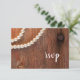 Customisez la carte de réponse RSVP Rustic Pearls and Barn Wood Mariage campagnard avec votre date de réponse de mariage. Cette carte r.s.v.p. de style ranch personnalisé décontracté mais classe présente une photo pittoresque d'un collier de perle blanche et de bois de grange patiné brun à tête d'ongle rouillé.