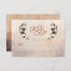 Conçue pour fonctionner parfaitement avec la collection Plumes et floraison de la forêt rustique, cette carte de réponse RSVP présente un assortiment de fleurs blanches, de noyer et de bordeaux et de feuilles de forêt placées sur une toile peinte à la main beige, marron, taupe et ombre. Personnalisez le contenu avec votre propre date de réponse ainsi que vos propres formulations d'acceptation et de refus.