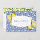 Carte de réponse au choix de repas RSVP avec citrons d'aquarelle et motif de tuiles bleu et blanc cobalt vintage.