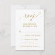 Calligraphie simple et élégante carte RSVP mariage or et blanc avec un code QR sur le dos. Pour une personnalisation plus avancée de cette conception, cliquez sur le BOUTON OUTIL DESIGN BLEU pour modifier la police, la taille, la couleur, etc. Des articles correspondants sont également disponibles.