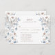 Faites une magnifique fête de l'amour et de la nature avec notre Elegant Floral Meals RSVP Card. Cette carte unique et étonnante apporte une touche de chic boho avec de magnifiques fleurs sauvages d'aquarelle peints à la main dans des teintes douces de blues pâles et poussiéreuses, complétées par des tanins terreux. Notre modèle facile à customiser vous permet d'insuffler votre voix personnelle en la faisant vraiment vous-même. Cette belle carte est parfaite pour des mariages romantiques et élégants à tout moment de l'année ! (Texte tan foncé.)