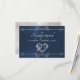 Design features an elegant blue background embellished with a delicate silver scroll heart and dividers. Stylish script place holders for the date are on the front, and response information on a white pearl back. Perfect for the simple to most elegant wedding. Also available with different colored backgrounds for your wedding theme colors. Designed to coordinate with the "Romantic Scroll Hearts & Calligraphy" Wedding Collection. To change details, click «Personalize». To move the text or change the text size, font, or color click «Click to customize further»