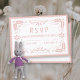 Cette carte de réponse RSVP pour une douche bébé fille présente un beau design d'art folklorique mexicain en or et blanc rose. Le motif picado en papel complexe présente des fleurs roses délicates et des feuilles contre un arrière - plan blanc et croustillant. C'est une combinaison époustouflante qui ajoute une touche d'élégance et de culture à l'événement.