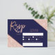 Rose Gold typographie sur personnalisable marine bleu rose parties scintillant or bloc de couleur, et faux rose or géométrique bandes chic mariage rsvp, parfait pour mariage élégant, élégant,