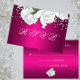 Une très jolie carte RSVP de mariage rose foncé très colorée, avec un luxueux bouquet de mariée rose blanche sur le devant, et un petit bouquet blanc sur l'autre côté de la carte de réponse.