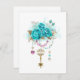 Clé d'or antique aux roses turquoise tendance décorée de feuilles d'or blanc et de perles rose et bleu. Couleur tendance. Rose turquoise. Blanc doré. Tiffany bleu.