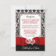 Cette carte d'enceinte de réception mariage damassé noir et blanc romantique a l'image d'une paire de coeurs unis au-dessus d'un ruban rouge et d'une image d'arc courant sur le fond de la carte. L'arrière a le même design avec des logements ou d'autres informations imprimées en rouge et noir. Si vous avez besoin d'autres articles correspondants, envoyez votre demande par courriel à niteowlstudio@gmail.com ou utilisez la fonction conversation Zazzle pour entrer en contact.