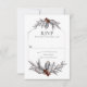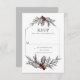 Un rsvp rustique avec un cadre géométrique gris argenté à la mode avec un holly d'hiver argenté et gris et un pin avec des baies brunes rouillées. Le dos de la carte est gris pâle. Personnalisez facilement avec vos propres informations.