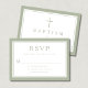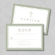 Sage Green Religious Cross Boy Baptism RSVP Card.