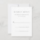 Simple et élégant mariage RSVP réplique carte d'enceinte dans un style design minimaliste moderne avec élégant script de typographie en noir et blanc classique. Personnalisez avec votre nom, monogramme, initial ou texte. Vous pouvez modifier la couleur du texte et le style de police à l'aide de l'option customiser. Vous planifiez un mariage ou vous recherchez des idées ? Ce design intemporel et classique est parfait pour les mariages, les fiançailles et autres occasions spéciales, ou pour un couple nouvellement engagé qui veut de belles invitations de mariage et de papeterie unique à envoyer à leurs invités qui correspondent à la décoration et le thème de leur cérémonie mariage et réception.