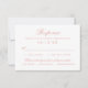 Complétez votre suite avec cette carte de réponse de mariage qui présente une écriture en or rose doux et une typographie serif raffinée sur un fond blanc propre. Comprend un espace pour le nom de l'invité, la sélection de présence et une section pratique pour le choix du repas. Minimal, intemporel et parfait pour les mariages formels, traditionnels et modernes classiques.