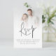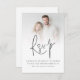 Carte RSVP de Mariage de code QR de motif moderne. Invitation vos invités à répondre en ligne. Ajoutez votre code QR menant à la page de réponse de votre site mariage. Il suffit de modifier l'exemple d'url et votre code QR sera généré automatiquement. Une typographie informelle en noir pour le titre principal RSVP et le reste du texte qui peut facilement personnaliser. Remplacez l'exemple de photo par votre préféré d'orientation du paysage.