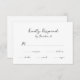 Ces cartes de réponse rsvp de mariage simples et élégantes, en noir et blanc, présentent un script manuscrit tendance pour un look fantaisiste et romantique. Il y a de la place pour offrir à vos invités le choix de repas ou de dîner entrée.