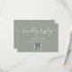 Un script de signature simple et élégant répond gentiment à la carte RSVP verte sage avec code QR. Conçu par Thisisnotme©