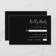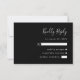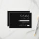 Cette simple carte de boîtier RSVP mariage moderne présente du texte blanc sur un arrière - plan noir. Le titre apparaît dans la calligraphie stylisée d'écriture manuscrite. Customisez le texte restant dans la police sans serif. L'envers est noir solide.