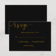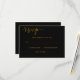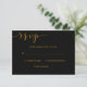Cette élégante carte de mariage RSVP en noir et or est parfaite pour un mariage moderne. Le design simple présente une élégante calligraphie dorée sur un arrière - plan noir.